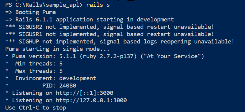 ログを見ると、Railsで起動されるWebサーバーは、Pumaのようだ。